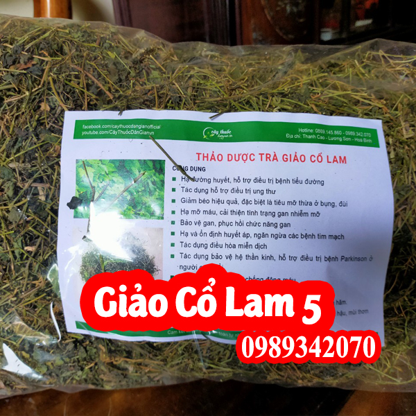Trà giảo cổ lam hay: còn gọi Ngũ Diệp Sâm ( Ngũ là 5, nghĩa là sâm 5 lá) Thảo dược thiên nhiên. giảo cổ lam được thu hái trực tiếp trên các vách núi đá tại vùng núi cao Hoà Bình 100% tinh chất từ thiên nhiên. giảo cổ lam có mùi vị thom ngon đặc trưng và hiệu quả tuyệt vời