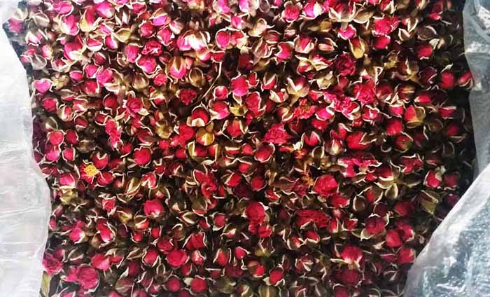 Trà hoa hồng có tên đầy đủ là trà nụ hoa hồng khô được thu hoạch từ những nụ hoa hồng chưa kịp nở để lưu giữ hương thơm tinh túy nhất của nó. Chỉ với những nụ hoa hồng còn khép chặt như thế này, thu hoạch, sơ chế, sấy khô mới giữ được hương thơm, còn không hương thơm chưa kịp đến tay bạn đã bay hết mùi và có mùi chua rất khó uống.