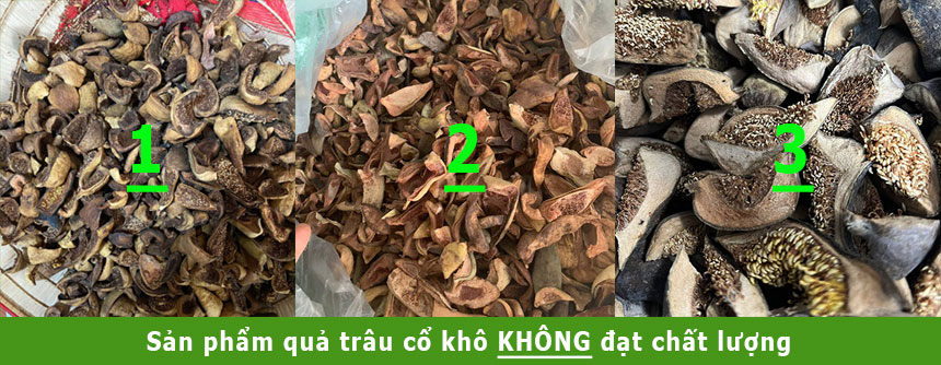 1. Quả trâu cổ phơi hoặc sấy đen không đạt chất lượng sản phẩm